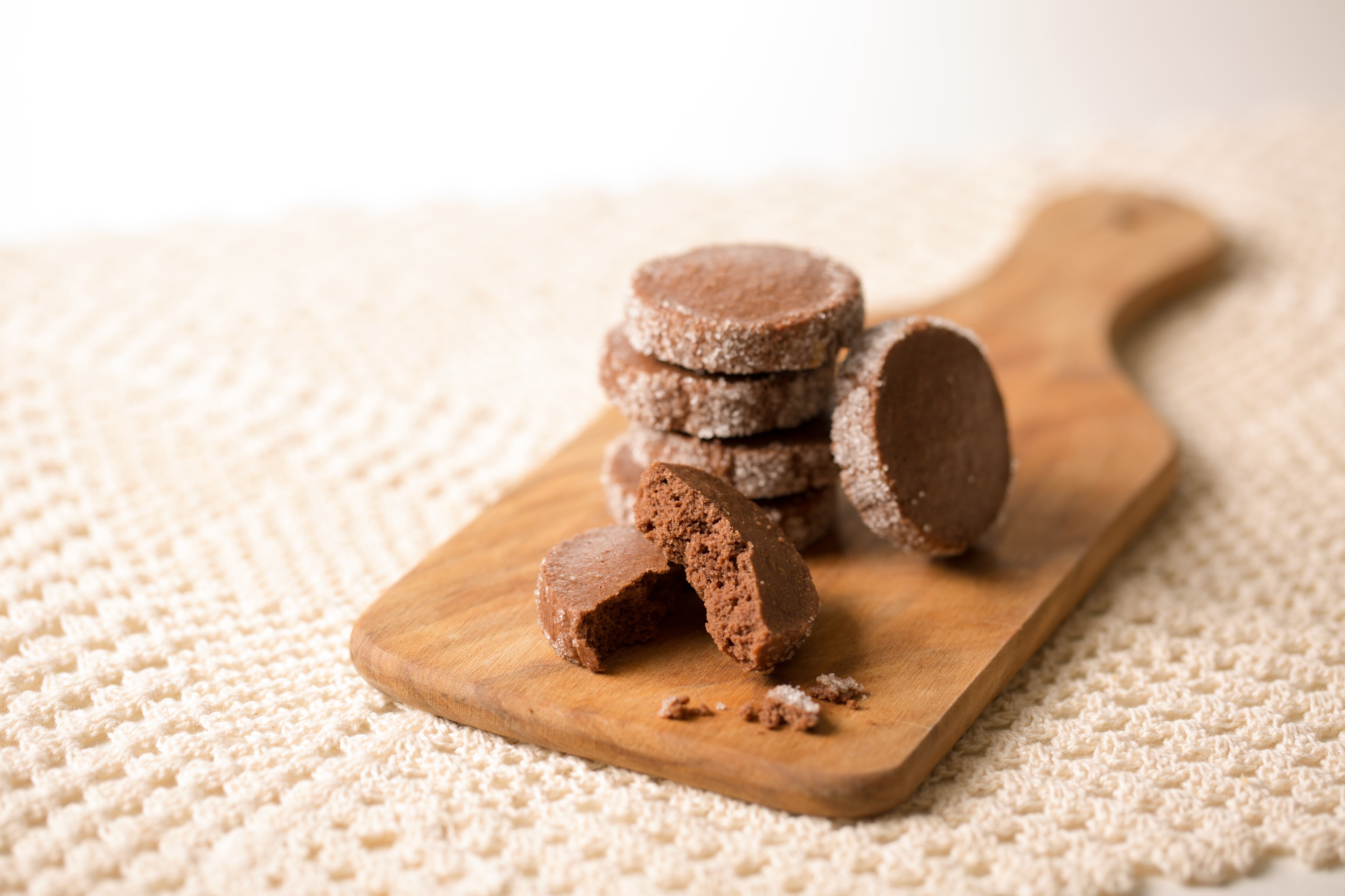 小麦粉(北海道産)、バター(乳成分を含む)、粉糖(グラニュー糖、コンスターチ)、卵黄(卵を含む)、グラニュー糖、ココア